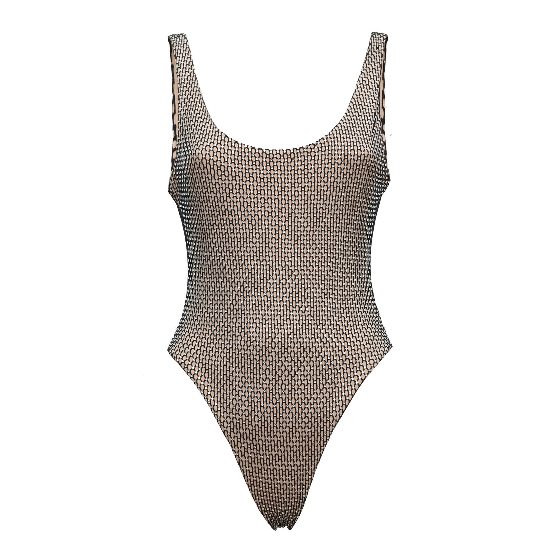 olympic cut one-piece with hand swaroski application.