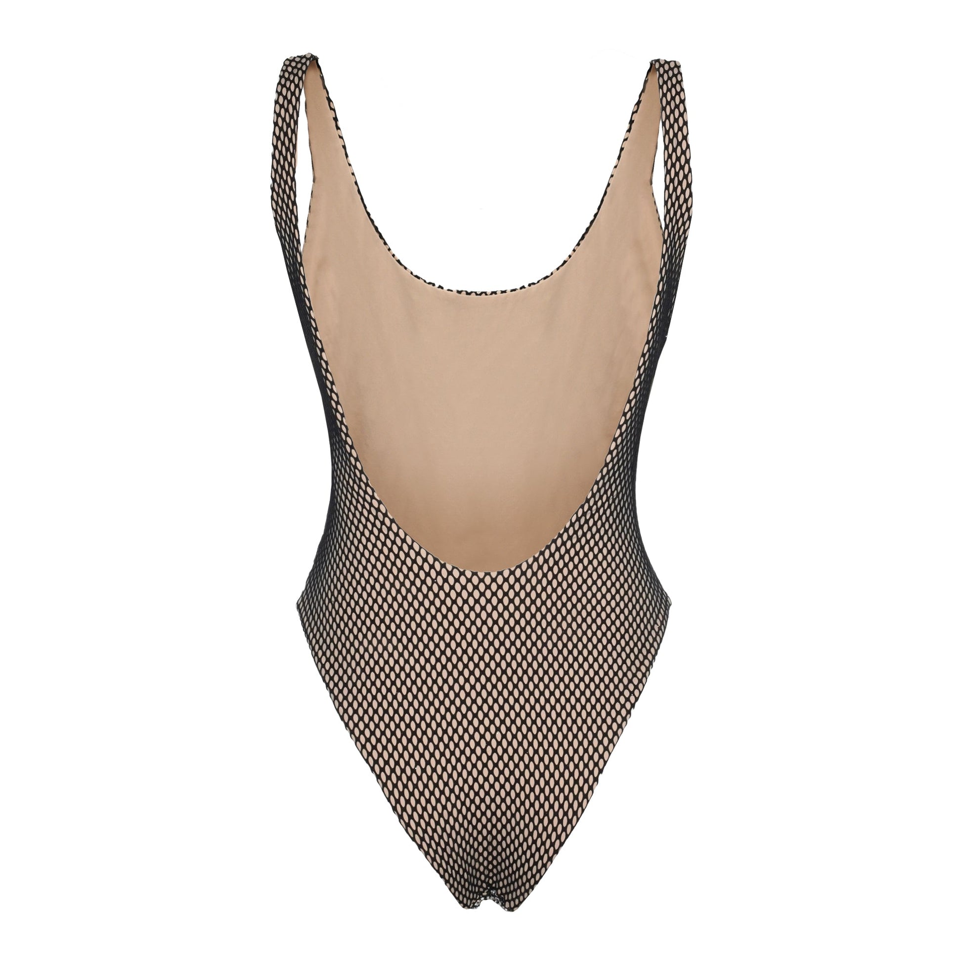 - nude lycra and black lycra mesh