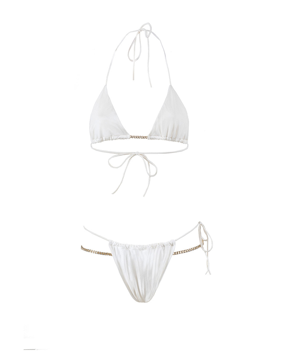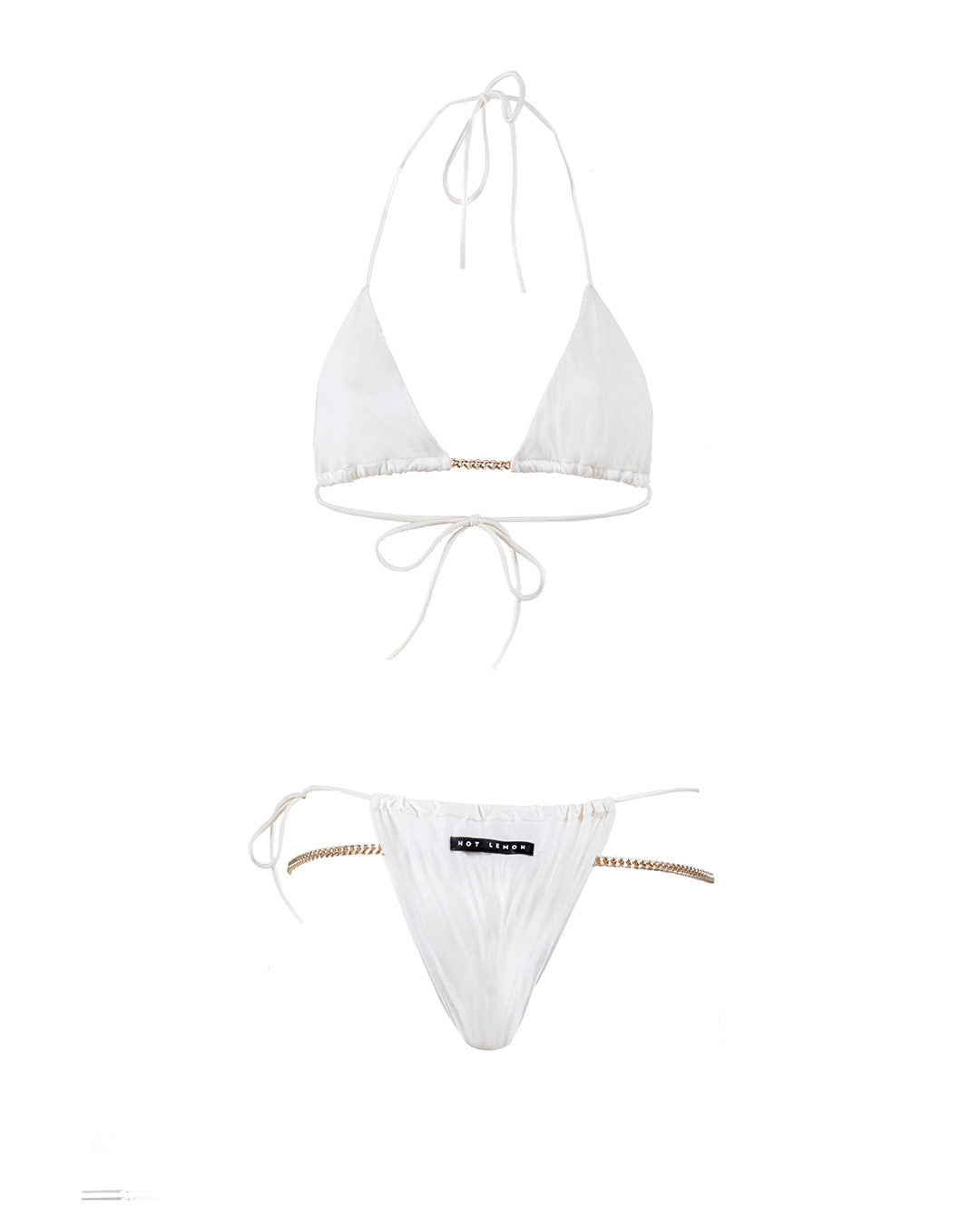 Triangle bikini gives sensuality to the beach look, made of soft satin-effect lycra.