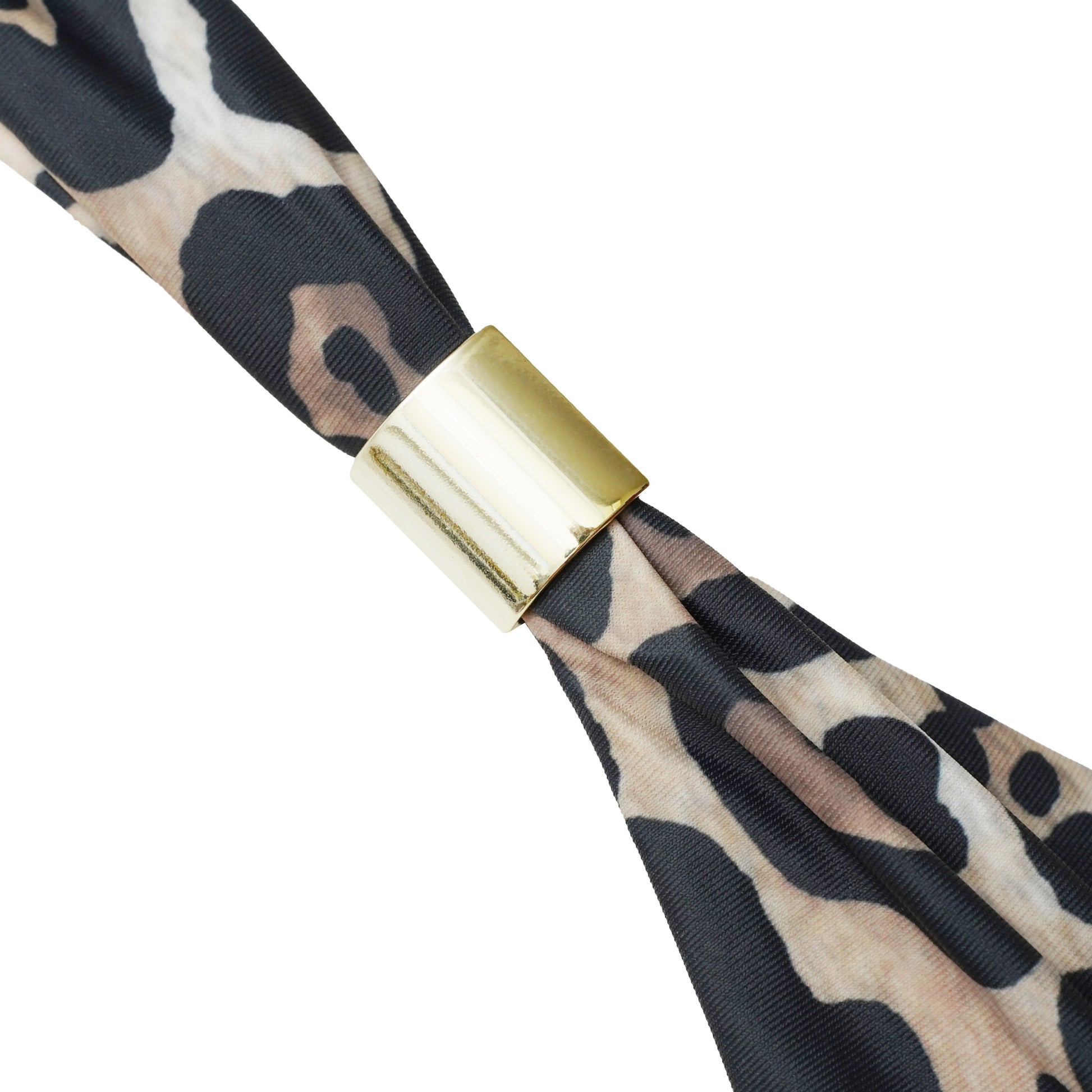 Unleash your wild side with this sail-style bikini top in a bold leopard print. The adjustable tie-back halter ensures a perfect fit, while the nickel-free accessory, treated for heat and seawater resistance, adds a touch of elegance without compromising comfort.