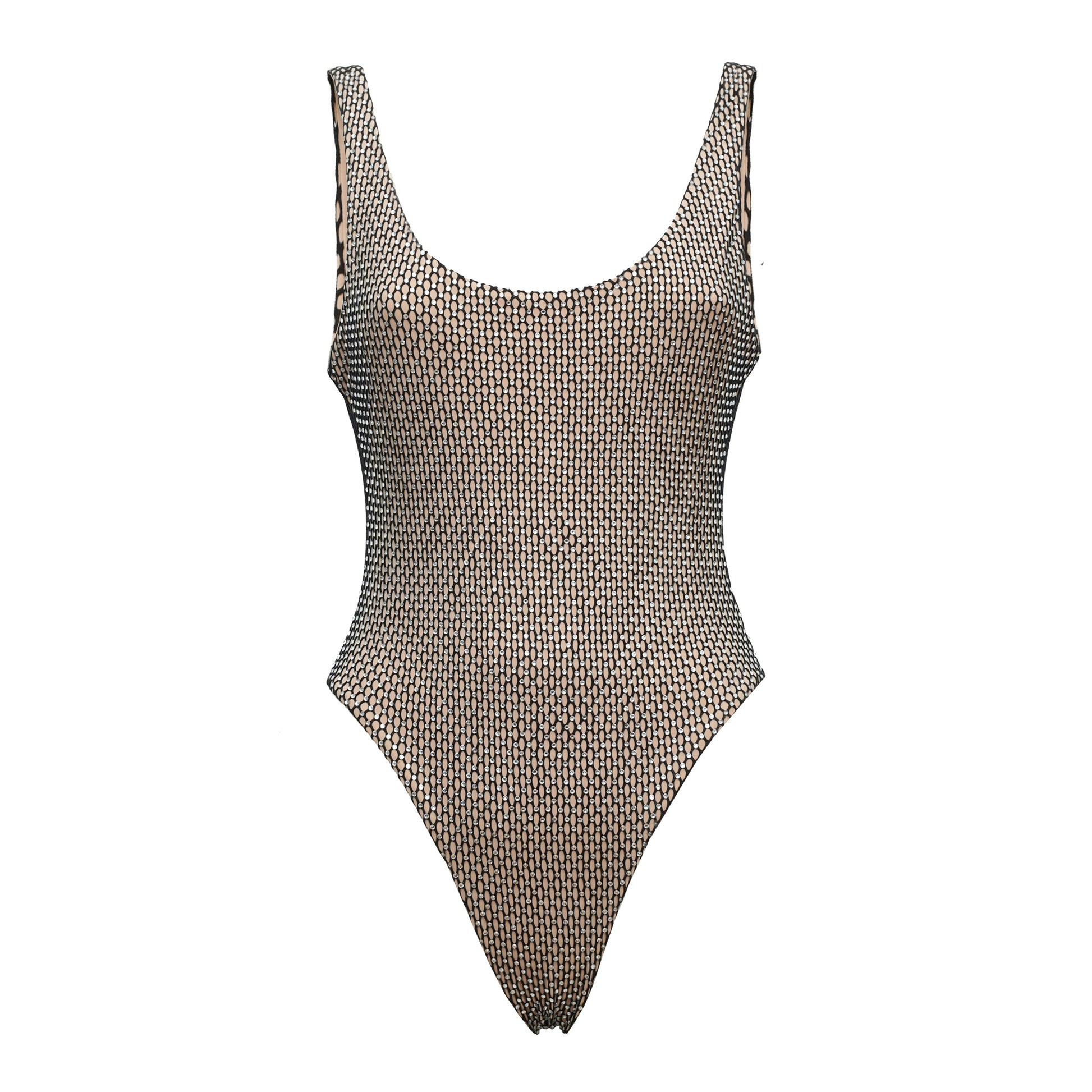 Effortlessly elegant, no crystals, this Olympic-cut one-piece blends sporty sophistication with high-fashion allure. Featuring black mesh lycra layered over nude lycra, it creates a striking two-tone effect that enhances your silhouette without the need for embellishments.